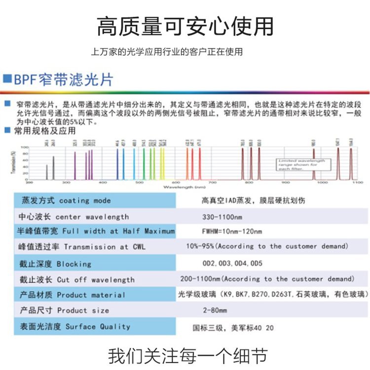 350nm~2000nmBPF窄帶濾光片濾色片